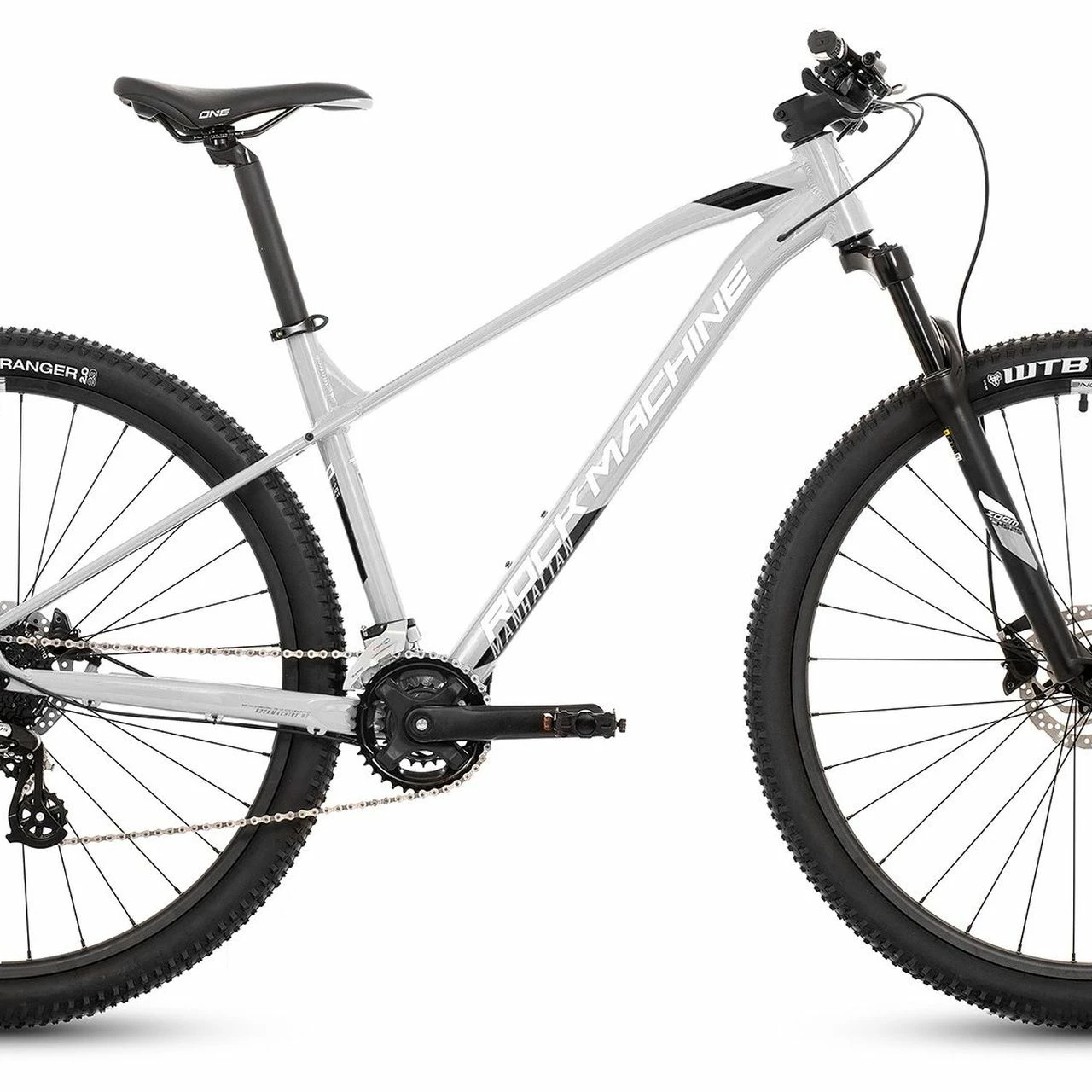 Das Rock Machine Manhattan 70-29R Mountain Bike ist ausgestattet mit einer RST Federgabel, einer 16-Gang Kettenschaltung mit Shimano Altus RD-M310 Schaltwerk und einer hydraulischen Shimano BR-MT200 Scheibenbremse.