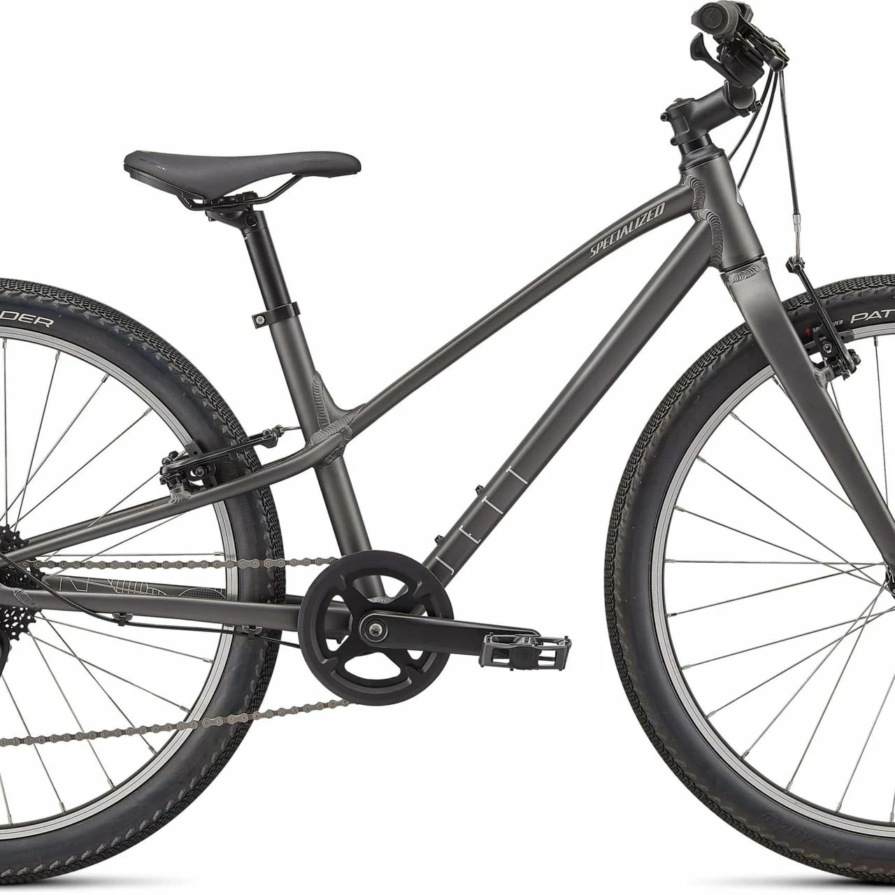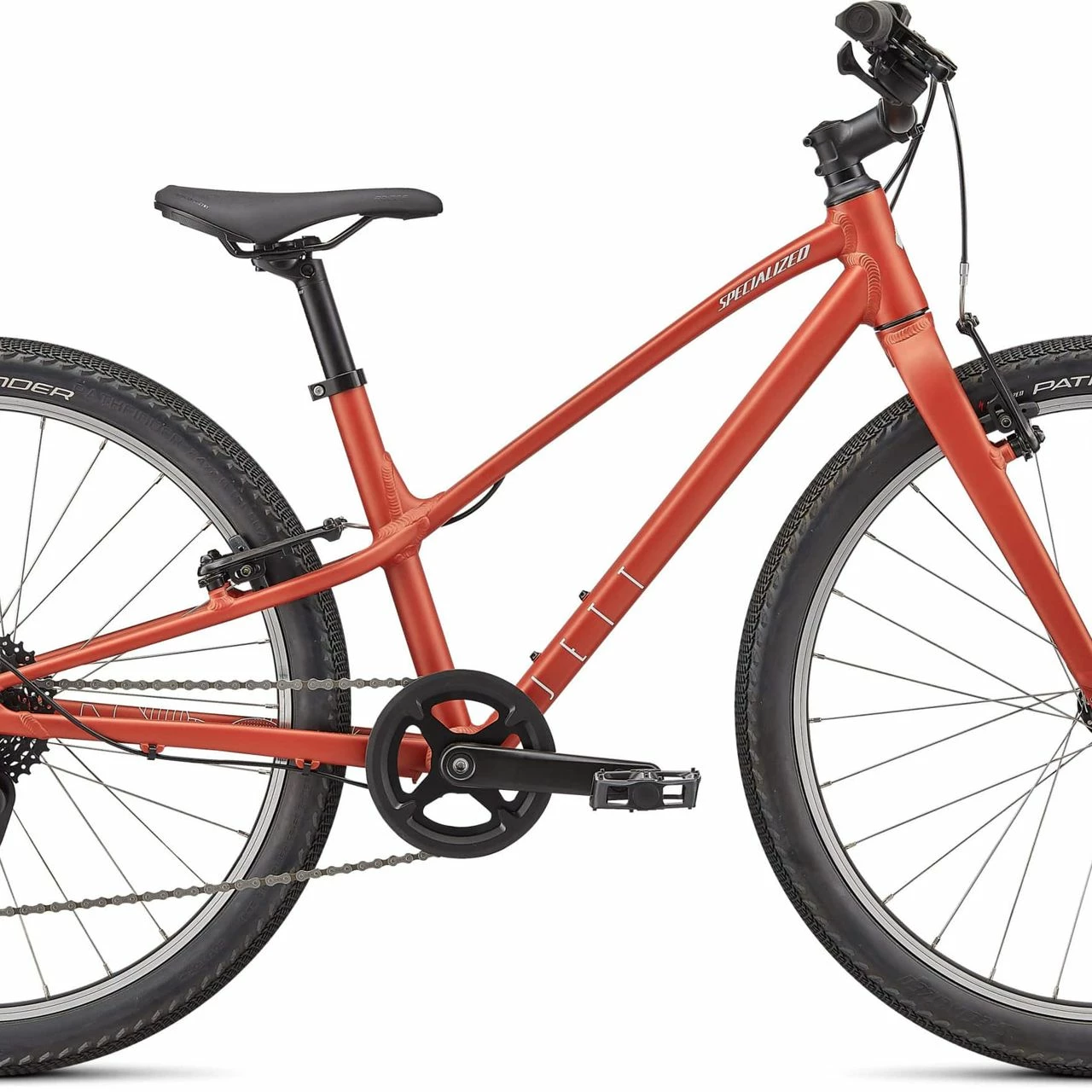 Das Specialized Jett 24 Multispeed Jugend Fahrrad ist ausgestattet mit einem Specialized Aluminium Rahmen, einer 8-Gang Kettenschaltung mit einem microSHIFT RD-M26S Schaltwerk und einer V-Bremse.